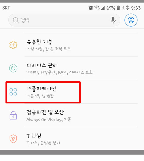 2. 설정 창에서 애플리케이션 목록을 터치해줍니다.